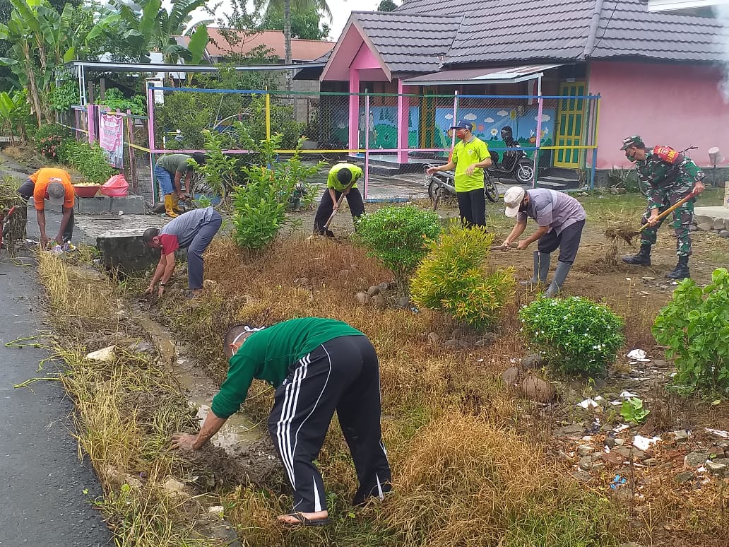 Bersama Anggota Polsek Dan Warga Anggota Koramil Pandawan Melaksanakan Gotong Royong