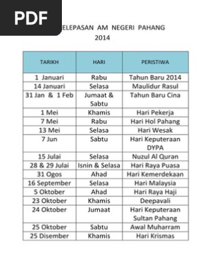 Jadual Cuti Umum Pahang 2020 Hari Kelepasan Am My Panduan