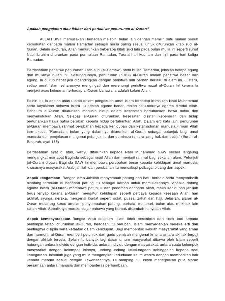 Apakah Pengajaran Atau Iktibar Dari Perisitiwa Penurunan Al