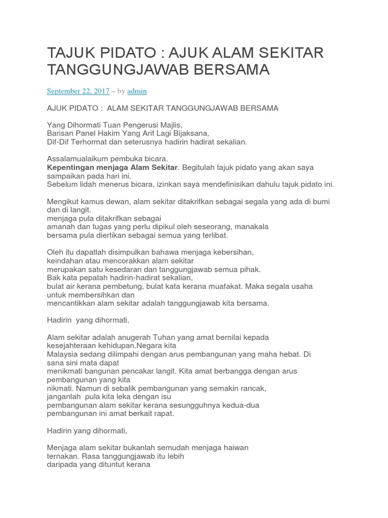Tajuk Pidato Ajuk Alam Sekitar Tanggungjawab Bersama September 22 2017 Admin