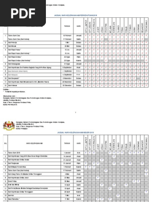 Jadual Hari Kelepasan Am Persekutuan Kelepasan Am Tarikh Hari Bahagian Kabinet Perlembagaan Dan Perhubungan Antara Kerajaan Jabatan Perdana Menteri Aras 4 Timur Bangunan Perdana Pdf Document