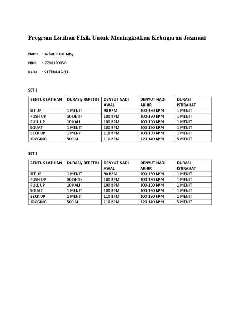 Program Latihan Fisik Untuk Meningkatkan Kebugaran Jasmani
