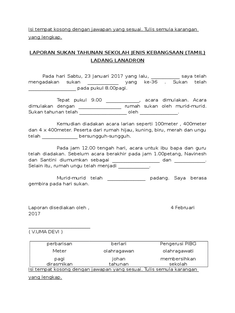 Latihan Karangan Isi Tempat Kosong