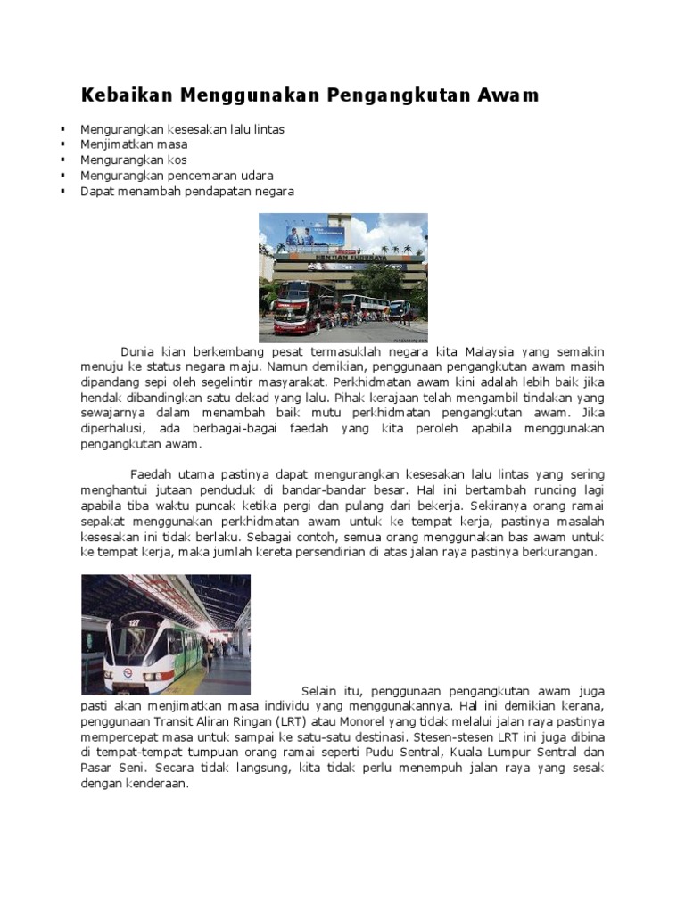 Contoh Karangan Kebaikan Menggunakan Pengangkutan Awam