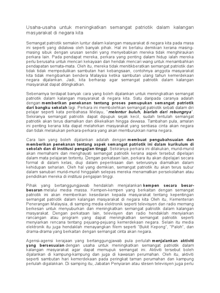 Karangan Kepentingan Mengukuhkan Semangat Patriotik Mengelakkan Perbuatan Negatif