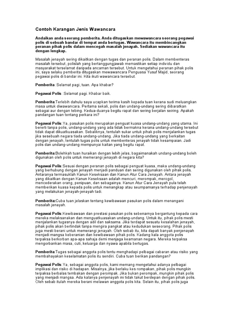 Contoh Karangan Jenis Wawancara Doc Document