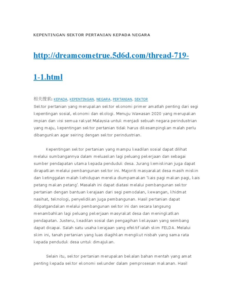 Karangan Sumbangan Sumbangan Sektor Pertanian Kepada Negara