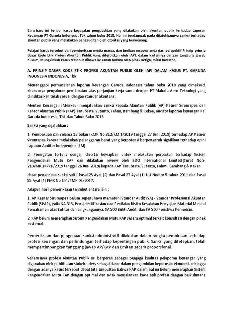 Audit Sulastri 2019 Mercu Buana Kasus Gagal Audit Dan Kode Etik Ap Dan Kap