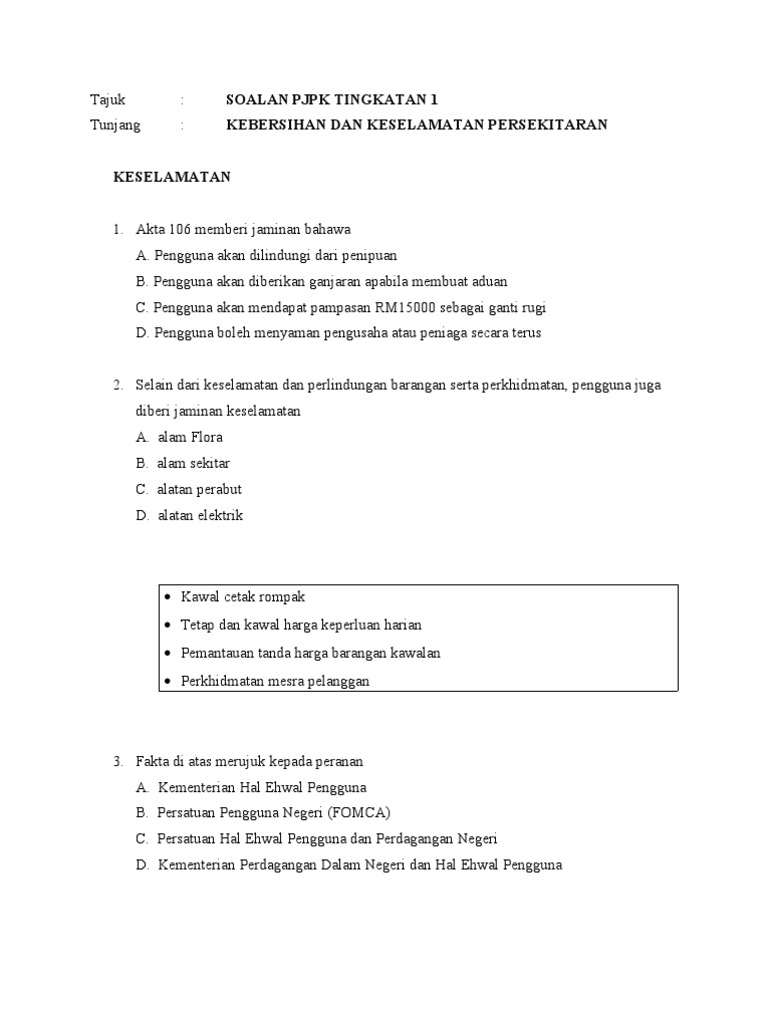 Soalan Kuiz Jkd Pjpk Bab Kebersihan Keselamatan