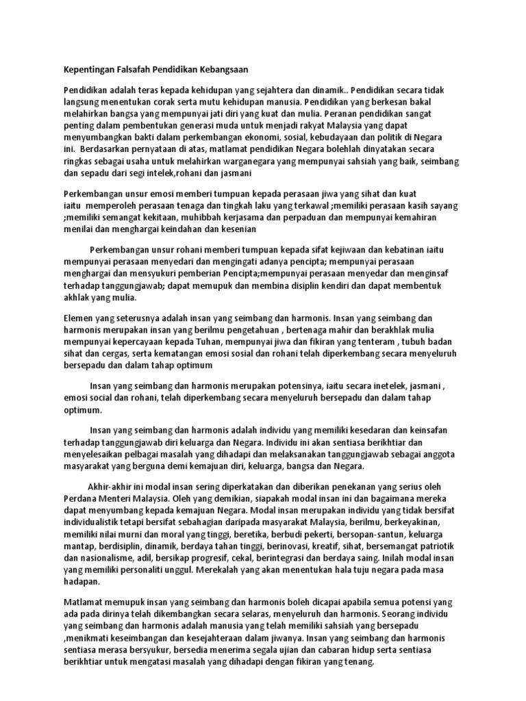 Kepentingan Falsafah Pendidikan Kebangsaan
