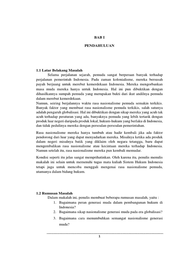 Semangat Nasionalisme Generasi Muda Dalam Mendukung Pembangunan Hukum Di Indonesia