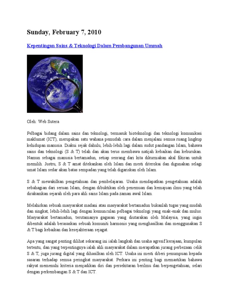Contoh Karangan Kepentingan Sains Dan Teknologi Wo Contoh
