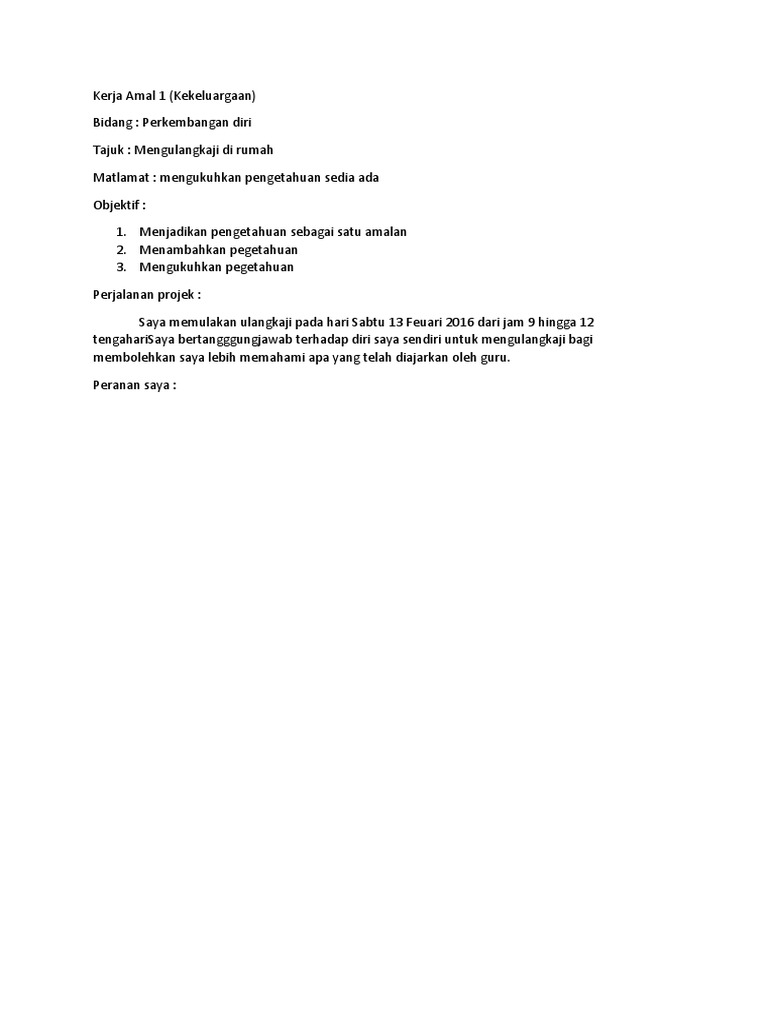 59711996 Kerja Amal Pdf Tajuk Membantu Ibu Membuat Kerja Rumah Tarikh 2 April 2010 Penganjur Ibu Lokasi Rumah Matlamat Mengurangkan Beban Ibu Dan Course Hero