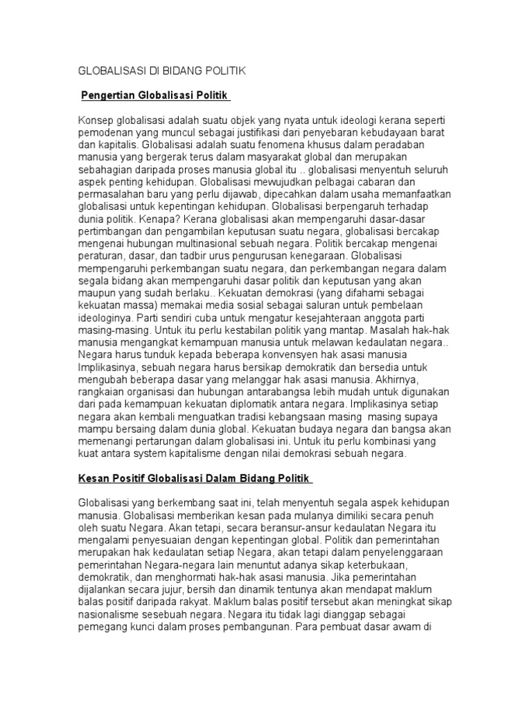 Dampak Globalisasi Pada Bidang Politik Dalam Negeri Dunia Politik Dan Ekonomi