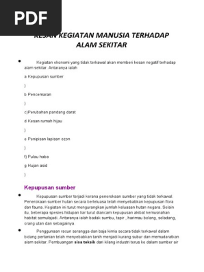 Kesan Kegiatan Manusia Terhadap Alam Sekitar Doc
