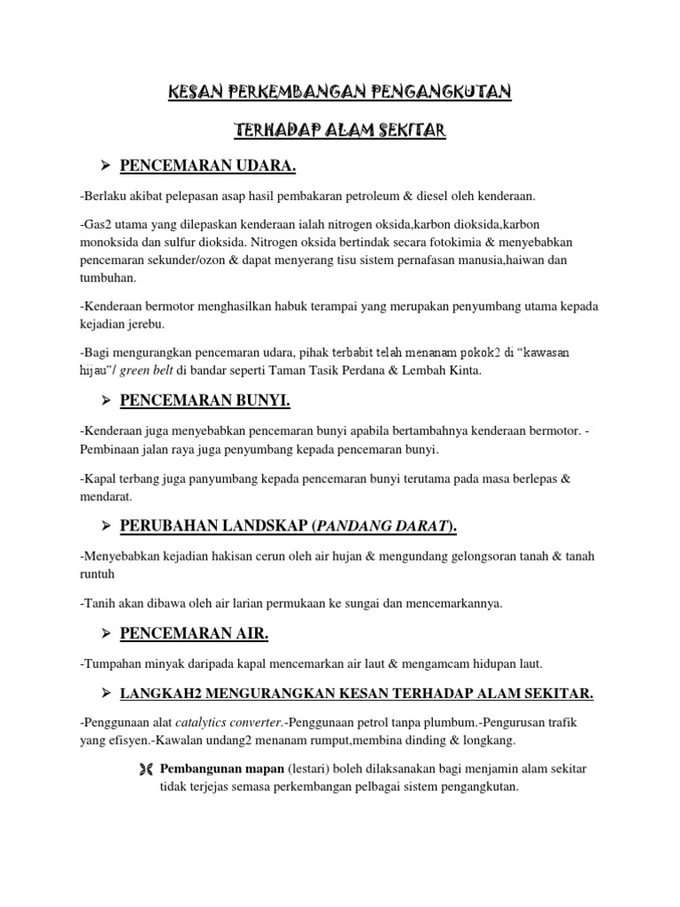 Kesan Negatif Akibat Perkembangan Sistem Pengangkutan Terhadap Alam Sekitar Pdf Download Gratis