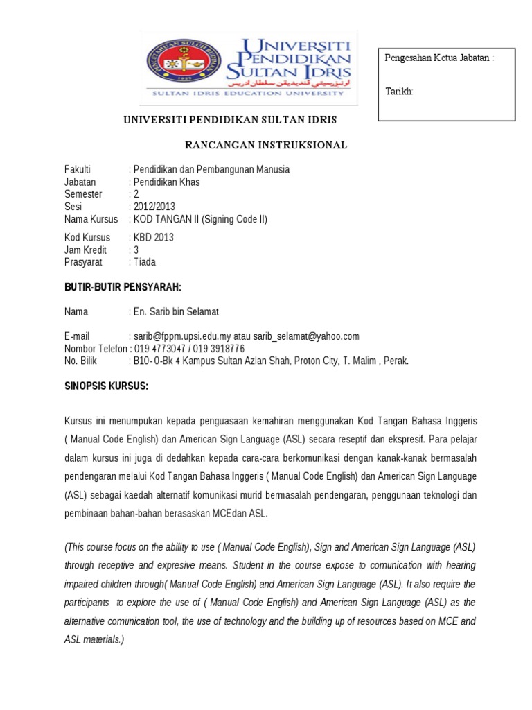 Rancangan Instruksional Pengesahan Ketua Jabatan