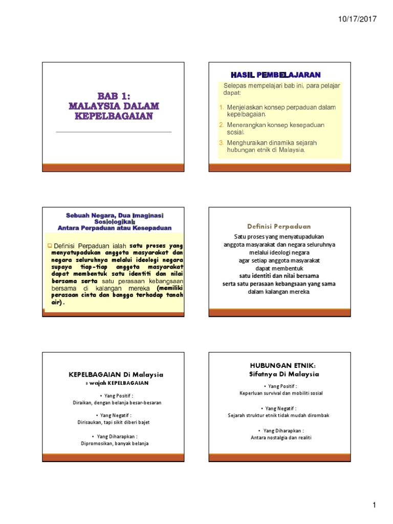 Bab 1 Malaysia Kesepaduan Dalam Kepelbagaian