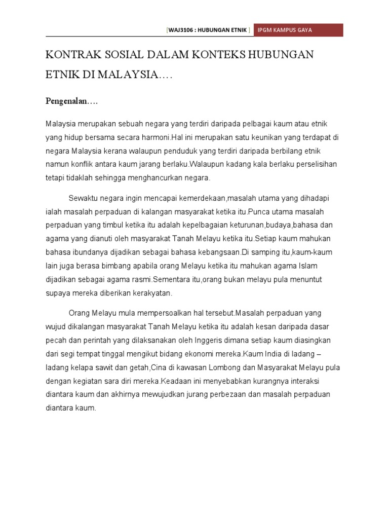 Kontrak Sosial Dalam Konteks Hubungan Etnik Di Malaysia