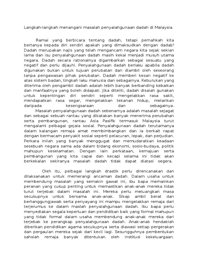 Karangan Cara Cara Mengatasi Masalah Penyalahgunaan Dadah