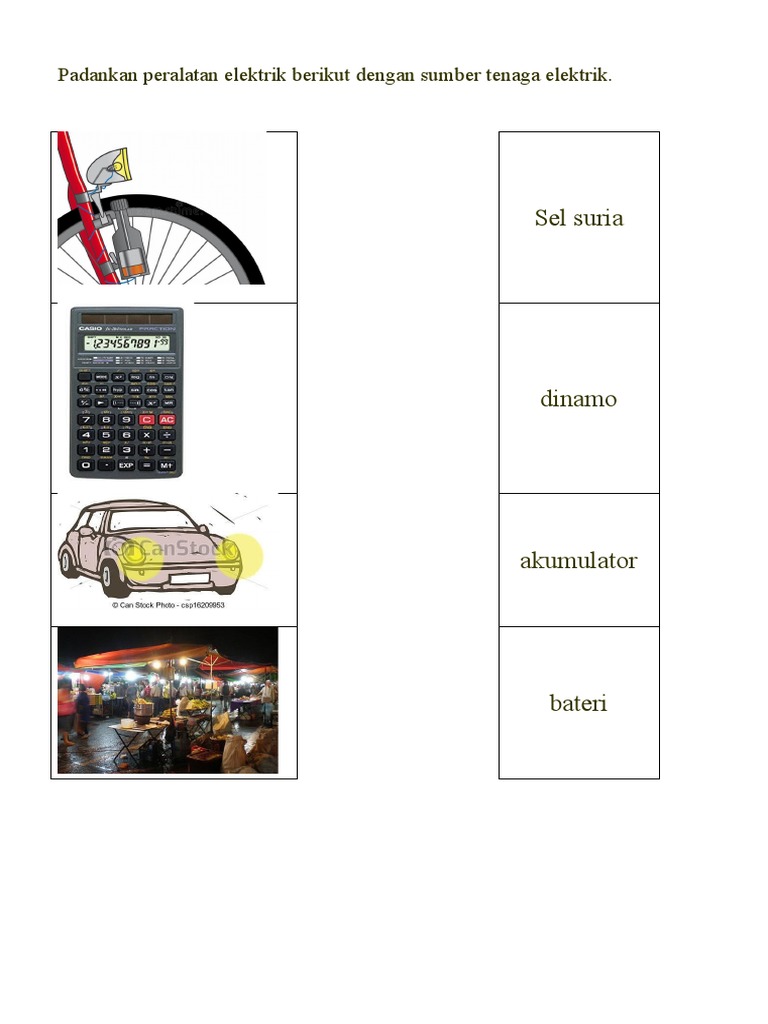 Latihan Sumber Tenaga Elektrik Sains Tahun 5 Aras Rendah