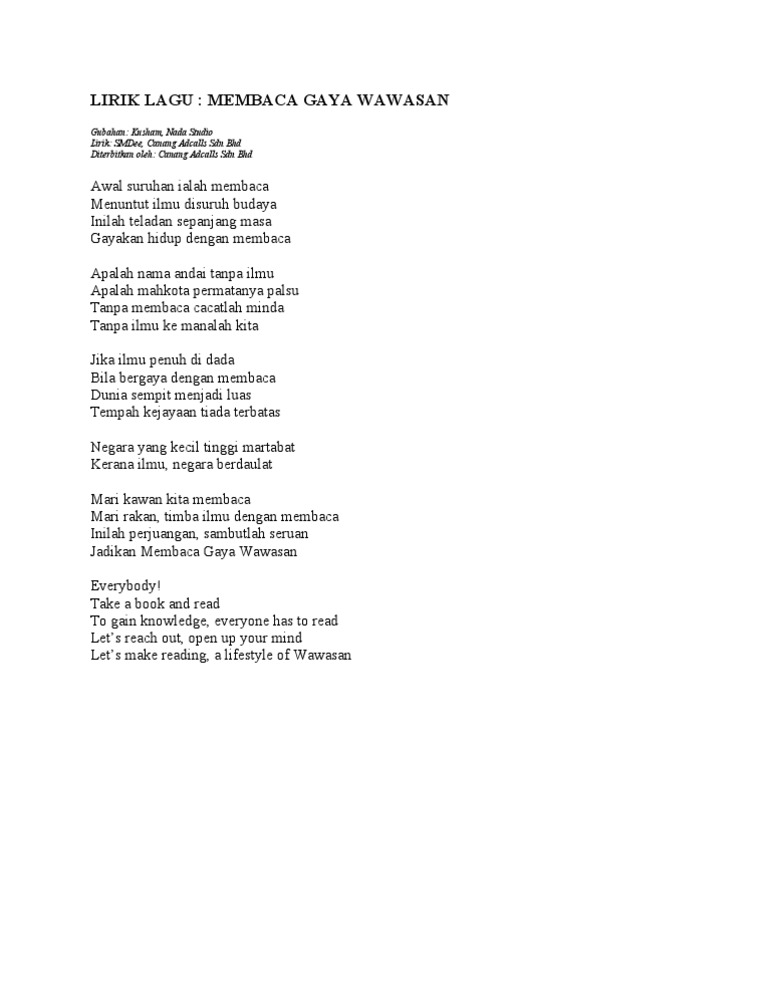 Doc Lirik Lagu Membaca Gaya Wawasan Rina Ramli Academia Edu