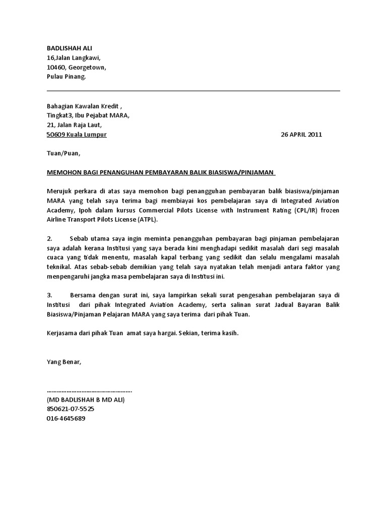 Ighoh Contoh Surat Penangguhan Bayar Pinjaman Mara