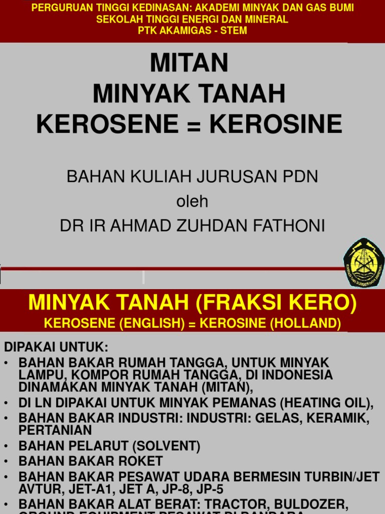 Mitan Minyak Tanah Kerosene Kerosine Bahan Kuliah Jurusan Pdn Oleh Dr Ir Ahmad Zuhdan Fathoni