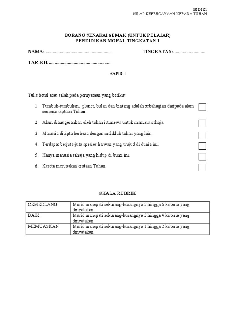 Panitia Pendidikan Moral Latihan 1 Nilai Kepercayaan Kepada Tuhan