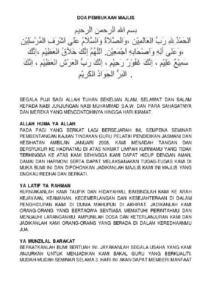 Doa Pembukaan Penutupan Kursus