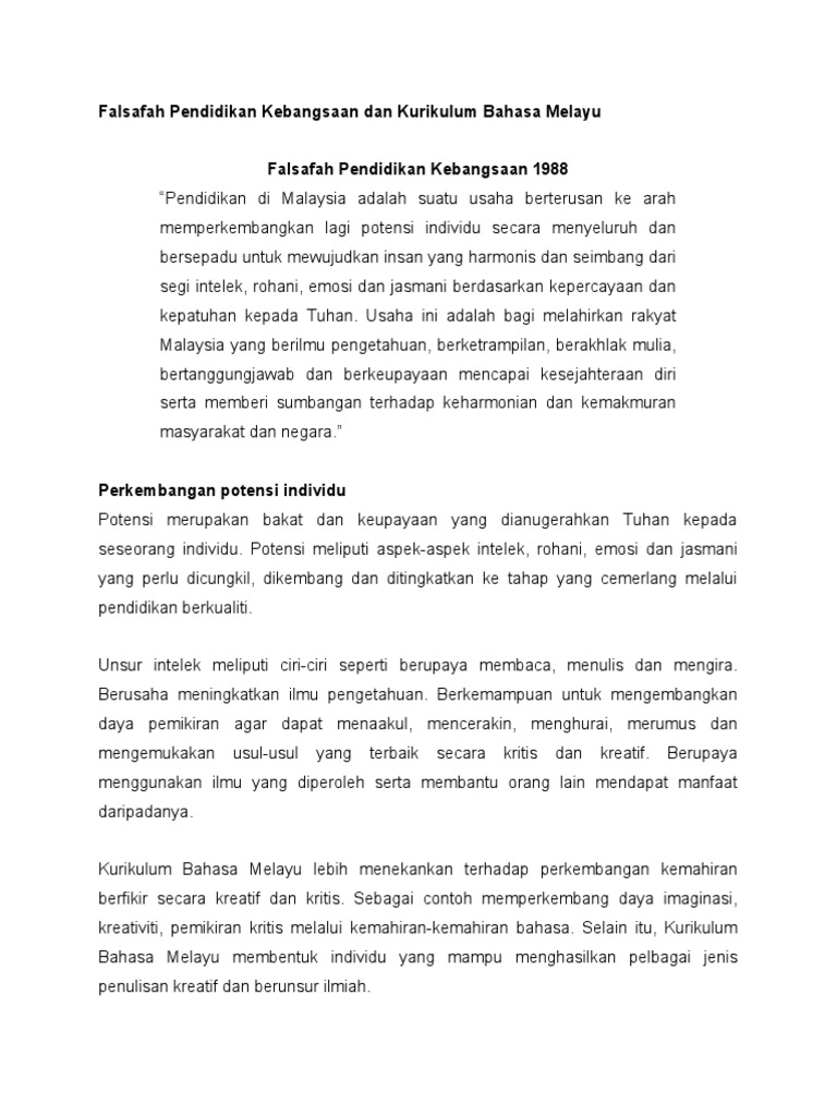 Falsafah Pendidikan Kebangsaan Dan Kurikulum Bahasa Melayu