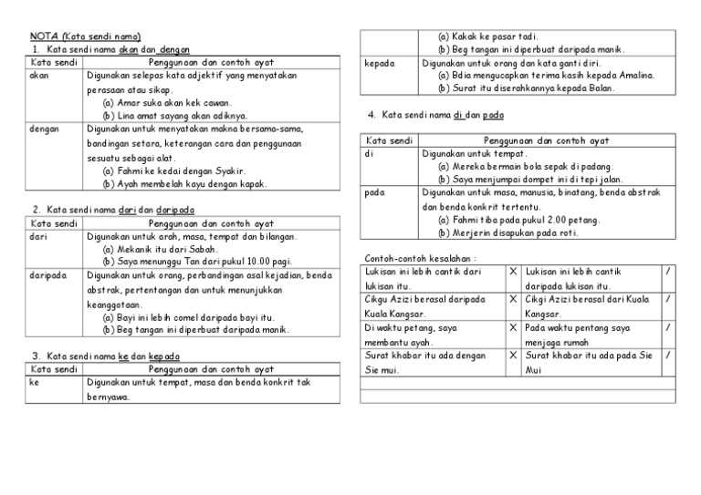 Contoh Soal Dan Materi Pelajaran 8 Contoh Kata Sendi Nama