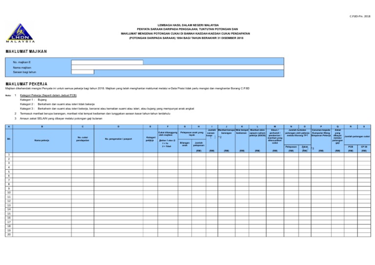 Penyata Saraan Potongan Cukai Pcb Cp 38 Lampiran B
