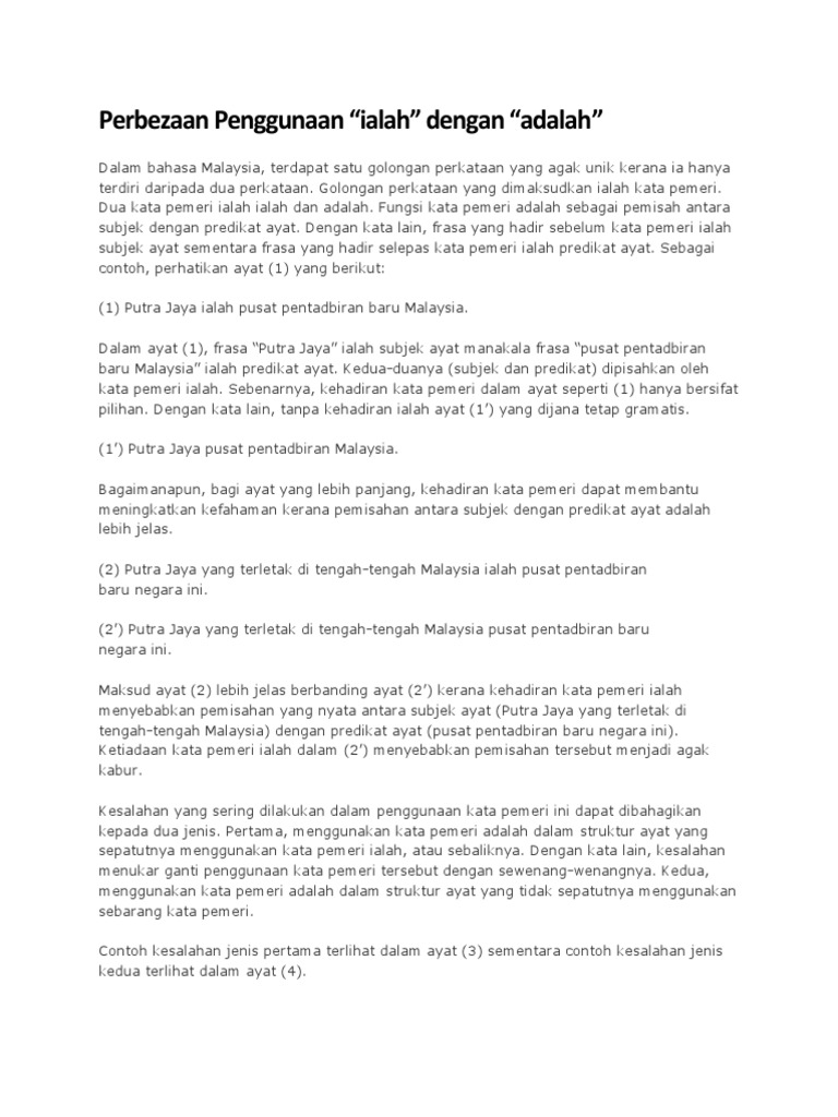 Contoh Ayat Kata Pemeri Ialah Dan Adalah Contoh Soal Dan Materi Pelajaran 1