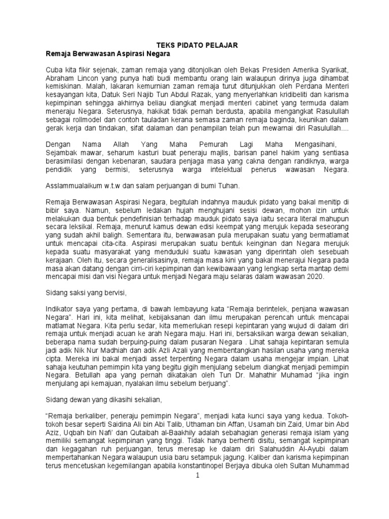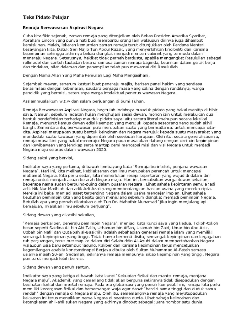 Teks Pidato Remaja Berwawasan Aspirasi Negara