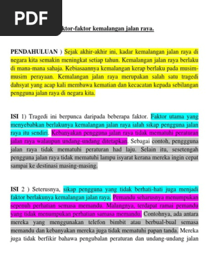 Cikgu Sabar Mohd Karangan Tingkatan 3 Faktor Faktor Berlakunya Kemalangan Di Jalan Raya