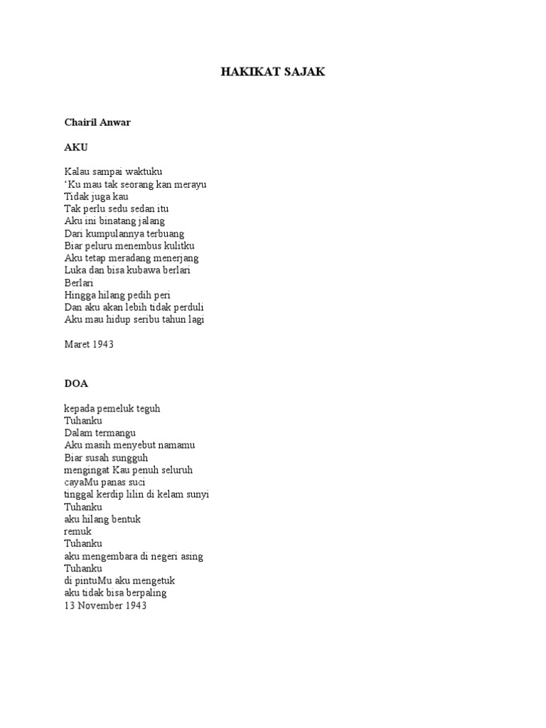 82 Puisi Puisi Chairil Anwar Kumpulan Sajak 1942 1949