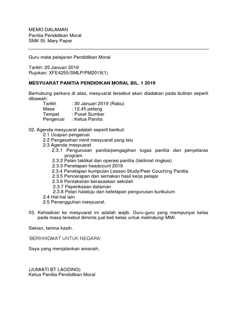 Memo Dalaman Pm1 2019