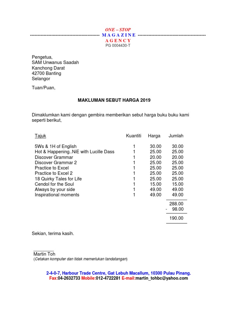 Contoh Quotation Harga Rasmi J