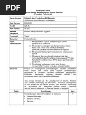 Proforma Edu 3101 Falsafah Dan Pendidikan Di Malaysia