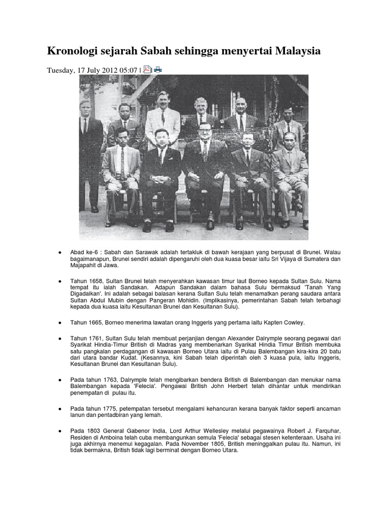 Kronologi Sejarah Sabah Sehingga Menyertai Malaysia