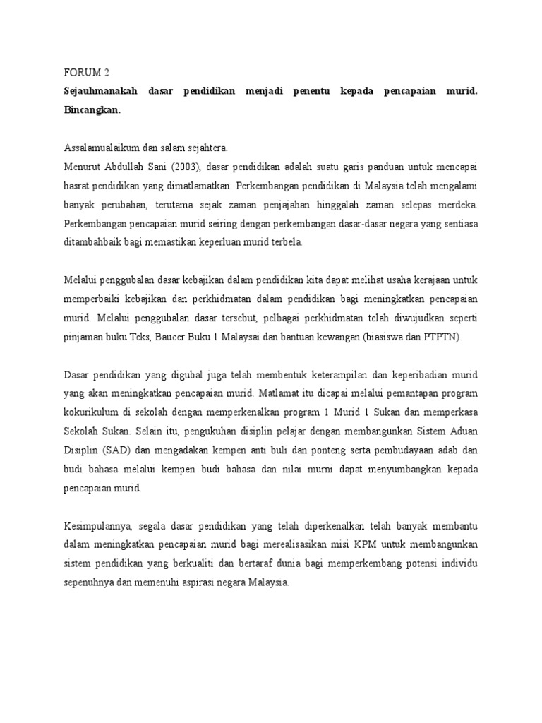 Sejauhmanakah Dasar Pendidikan Menjadi Penentu Kepada Pencapaian Murid