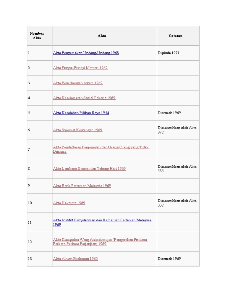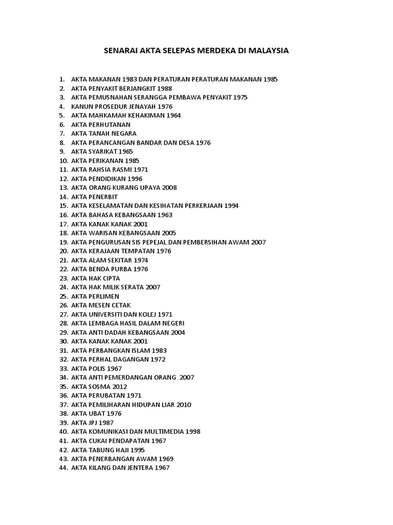 List Of Malaysian Law Acts Senarai Akta Akta Malaysia
