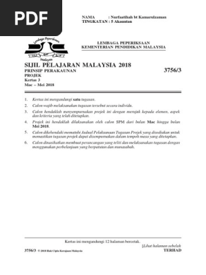 Sijil Pelajaran Malaysia 2018 3756 3 Prinsip Perakaunan