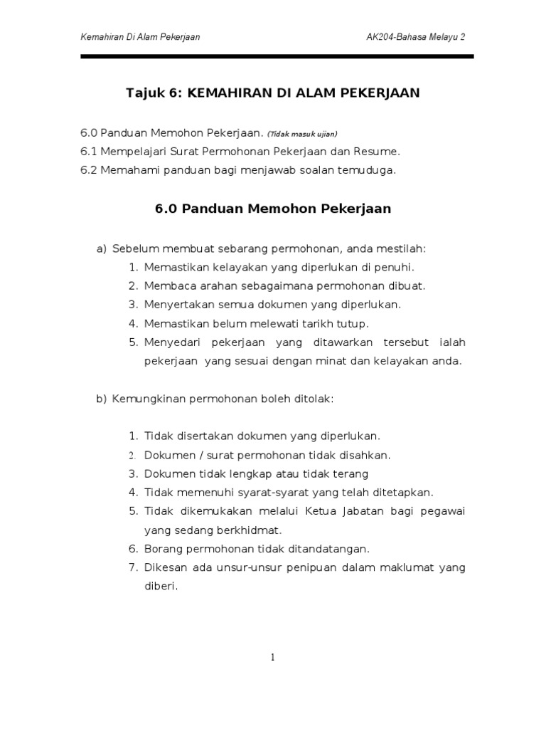 Tajuk 6 Kemahiran Di Alam Pekerjaan