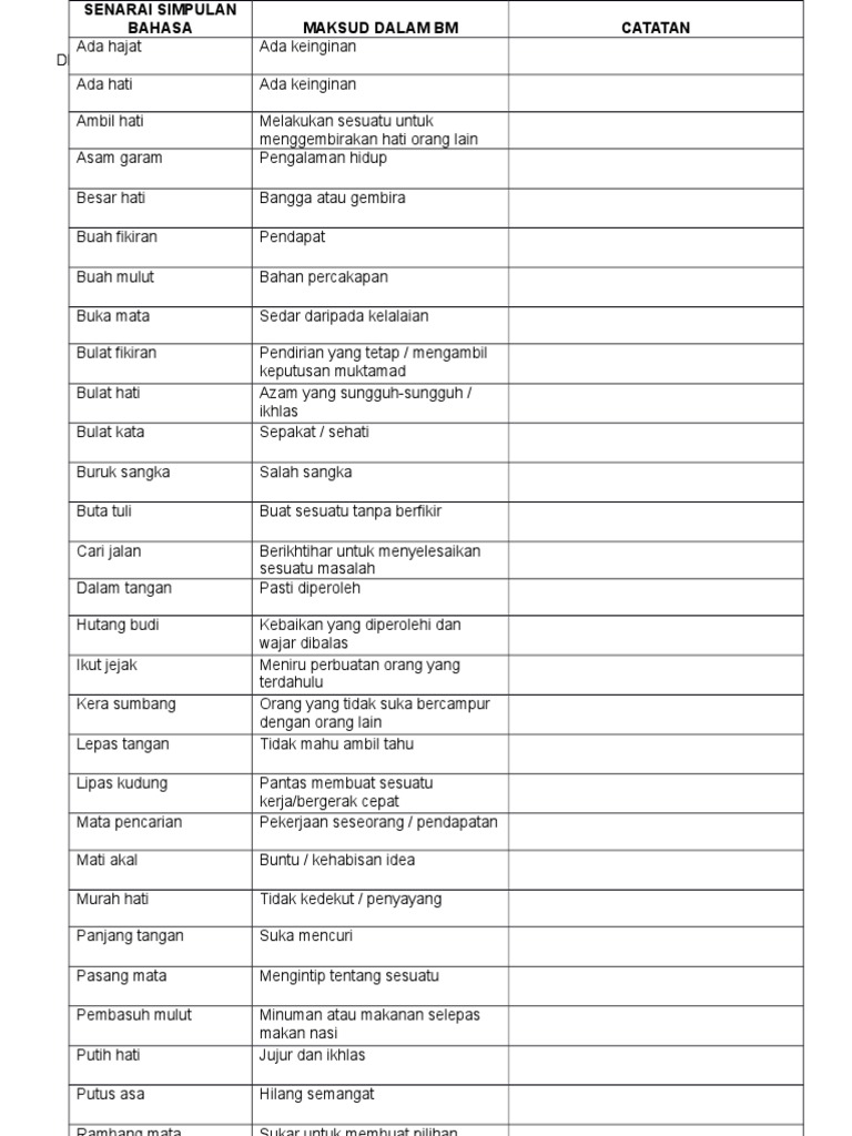 Senarai Peribahasa Sjkt Tahun 4 Tahun 6