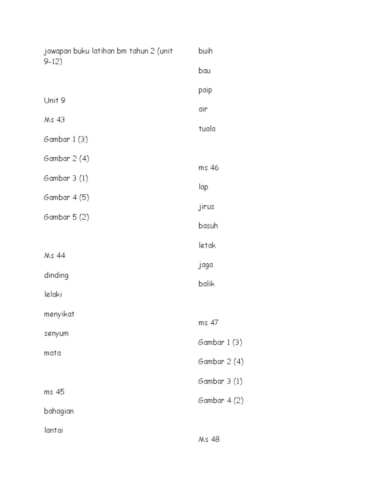 Jawapan Buku Aktiviti Bm Tahun 1 Jilid 2