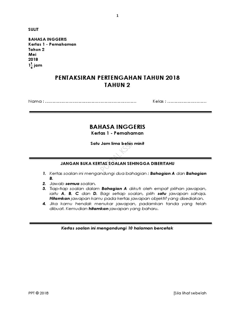 Bank Soalan Ujian Pertengahan Tahun Bagi Tahun 2 2017 Sumber Pendidikan