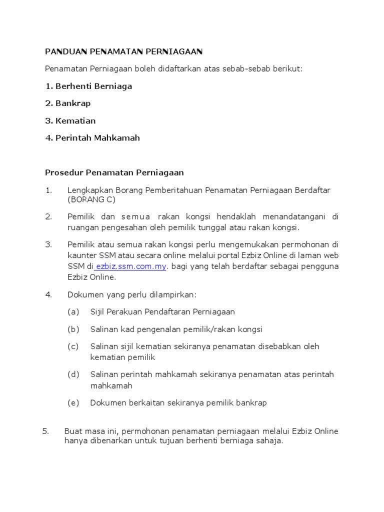 Http Www Ssm Com My Bm Pages Services Registration Of Business Rob Registration Panduan Penamatan Perniagaan New Pdf