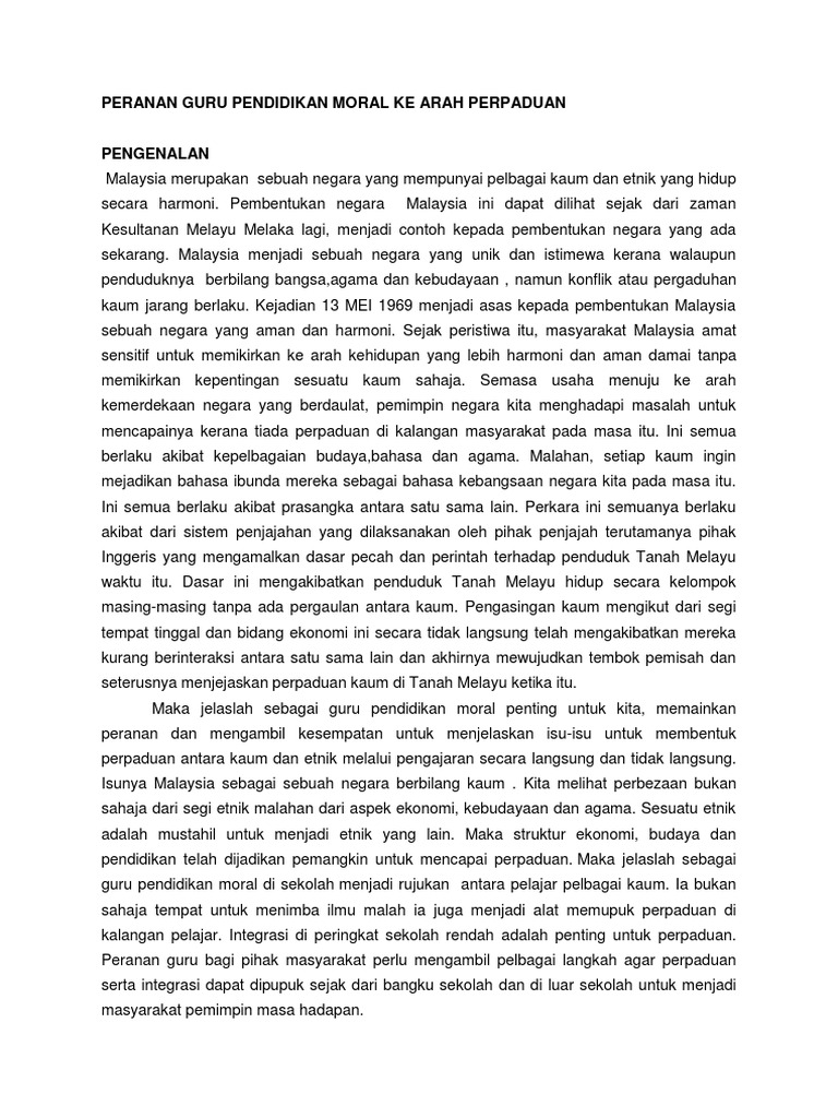 Peranan Guru Pendidikan Moral Ke Arah Perpaduan
